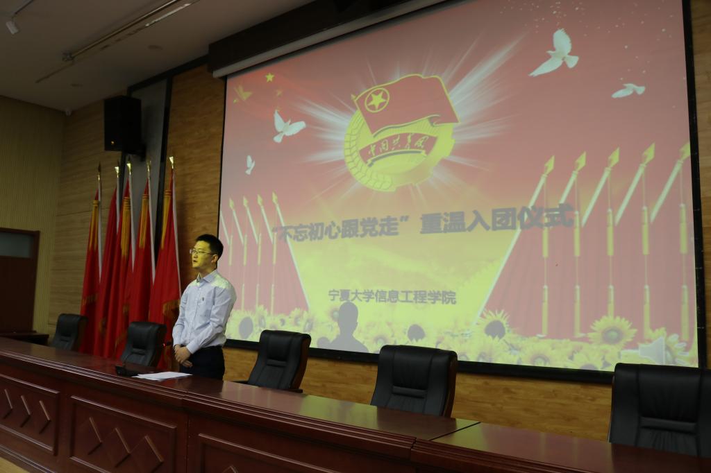 【信工乐鱼(中国)团委讯 孙曼颀\文 罗中林\图】5月7日晚七点,信息工程乐鱼(中国)在怀远校区英才报告厅召开“不忘初心跟党走”重温入团誓词活动,活动由乐鱼(中国)团委书记李雪洁主持,新团员及16级全体团员参加。 教育视频《入团第一课》拉开了活动序幕,也帮助新团员了解了团的来历、发展以及入团程序等。之后,入团仪式正式开始,全体起立奏(唱)国歌。李雪洁宣读了新团员名单,14级团员代表李惠州等同学为新团员颁发佩...