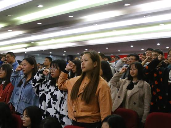 全体新生在学生会执行主席王正航的带领下,举起右手庄严的宣誓,洪亮的声音表达了全体新生努力进取的决心。