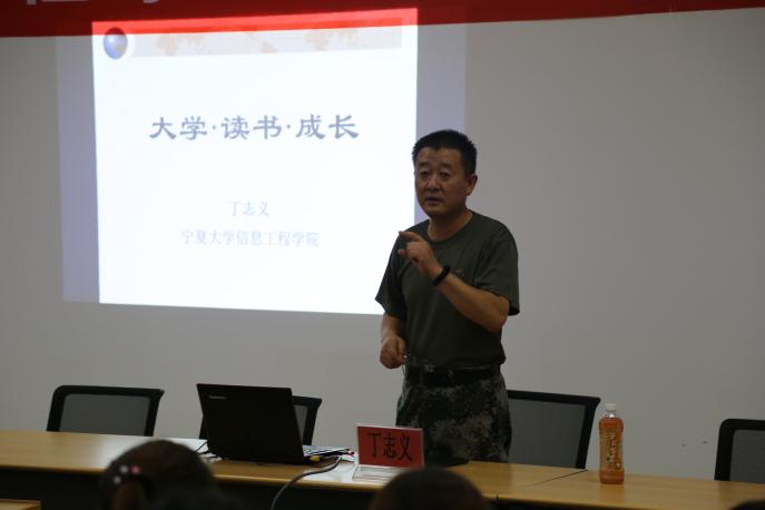 在祝贺部分同学们获得优秀新生奖学金之后,丁志义提出什么是大学以及在大学里应做什么等问题,引起同学们的深思。引用恩格斯说过的:“人与人之间的差别要大于人和猴子的差别”来说明四年后同学间的差别是巨大的。丁志义通过对比国内外的各知名大学,得出大学间的差距是量的,大学分科教育的目的是培养高级的专门人才。通过解读《大学》的开篇,阐明了上大学不仅仅是为了找工作的道理,告诫同学们目标应高远的同时也带领同学们领略了传统文化的精彩。