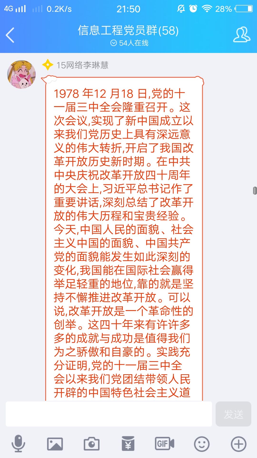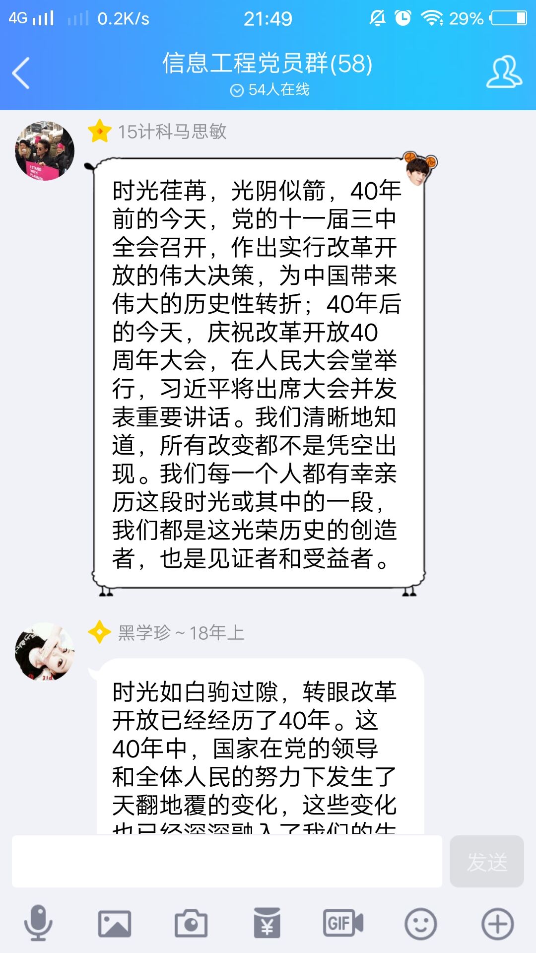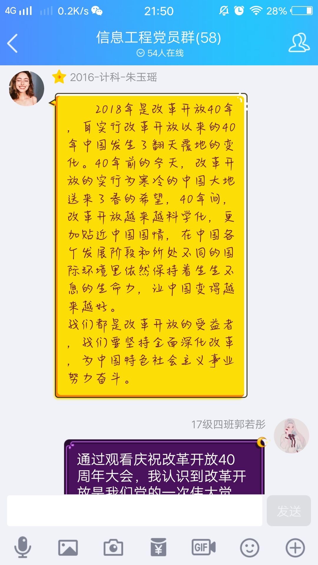 金波楼410教室里,信息工程乐鱼(中国)的学子们聚精会神的聆听着直播里的一字一句,感受着改革开放四十年来祖国的千变万化。全体党员在观看完毕后写下了心得感悟,表达自己对改革开放四十周年巨大变化的感受。