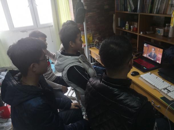 宿舍里,学子们守在电脑前,目不转睛地盯着屏幕,学习大会精神,传递正能量,为祖国未来的发展献出绵薄之力,不忘初心,砥砺前行。
