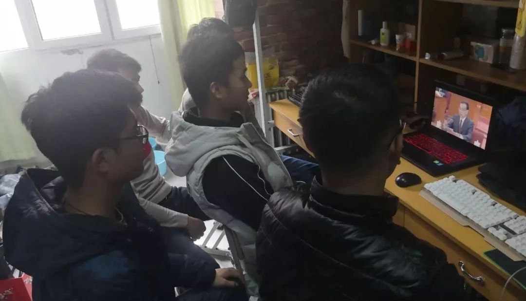 宿舍里,学子们守在电脑前,目不转睛地盯着屏幕,学习大会精神,传递正能量,为祖国未来的发展献出绵薄之力,不忘初心,砥砺前行。