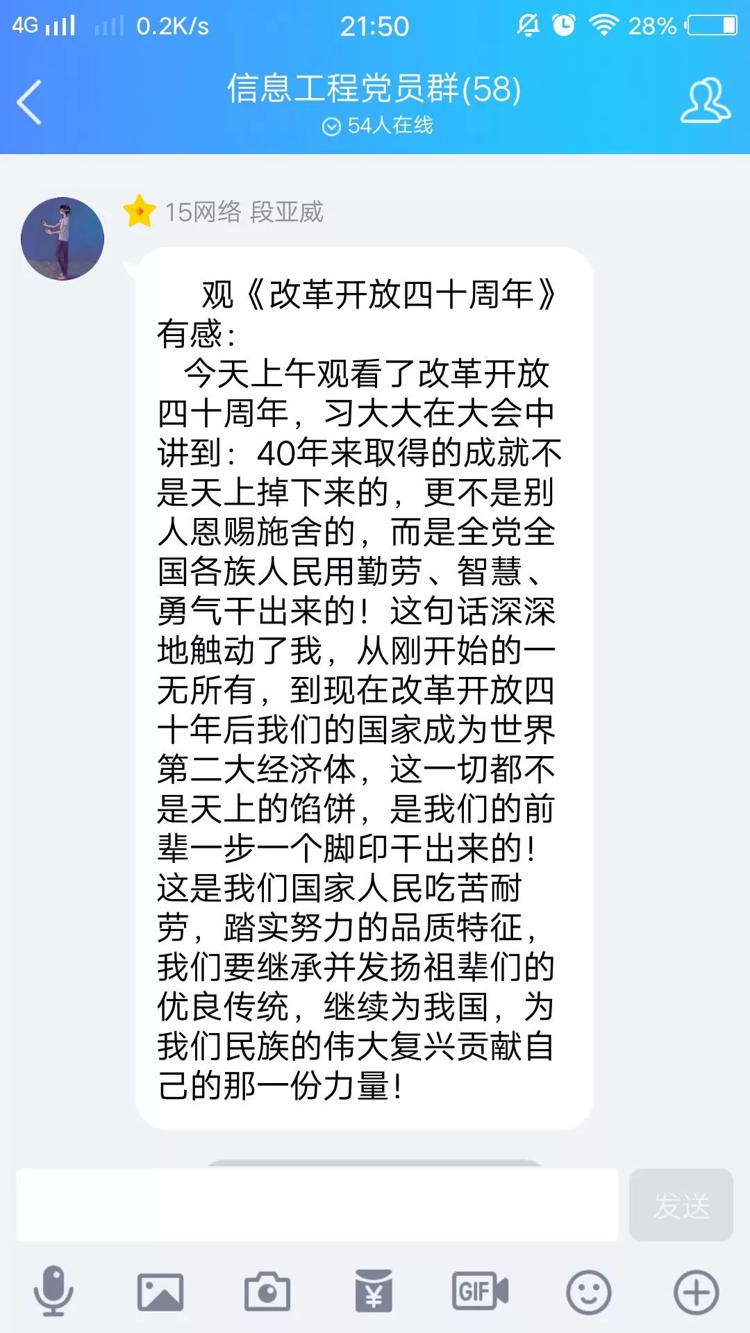 金波楼410教室里,信息工程乐鱼(中国)的学子们聚精会神的聆听着直播里的一字一句,感受着改革开放四十年来祖国的千变万化。全体党员在观看完毕后写下了心得感悟,表达自己对改革开放四十周年巨大变化的感受。