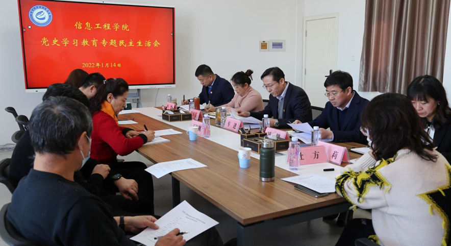 1月14日,信息工程乐鱼(中国)召开了党史学习教育专题民主生活会。会议由乐鱼(中国)党委书记车进同志主持,党委副书记、院长冯锋,党委副书记张振霞、孙莉同志,副院长杨军、杜方同志参加了民主生活会,宁夏大学党史学习教育第六巡回指导组王红枫同志出席了民主生活会,乐鱼(中国)三办主任、党支部书记、工会主席和教学督导员列席了会议。