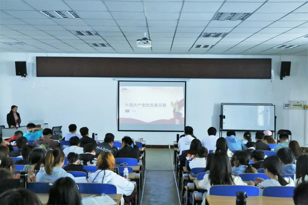 张振霞从中国共产党诞生的历史背景、中国共产党的诞生和建国、改革开放的发展成果、百年的历史启示四个方面,对党的百年发展历程中各个阶段的重大历史节点作了深入浅出地讲解,引导学生从党史中汲取智慧和力量,坚定理想信念,传承红色精神。