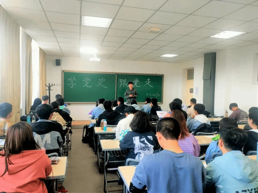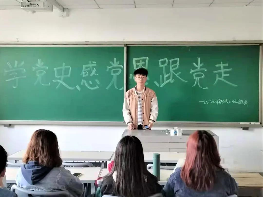 各班团支书通过图片、视频等形式,让同学们直观的了解中国共产党从诞生到建立新中国的历史,这是我们党一步步由弱到强、由幼稚走向成熟的“成长史”,是我们党带领中国人民推翻“三座大山”、实现民族独立和人民解放的斗争史,是奠定我们党的性质宗旨、初心使命、思想理论、精神气质的关键期。