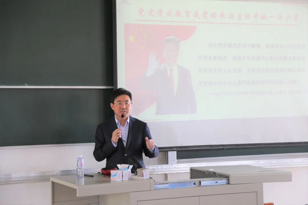 他讲到,当前中国面临着百年未有之大变局,新时代更加要求我们青年学生学习党史,传承红色精神,坚定理想信念,坚持和发展中国特色社会主义,以昂扬的青春活力投身到祖国的建设和发展中。
